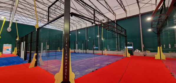 Installazione di 4 campi Padel Mod. Italian Padel Panoramici con Erba sintetica testurizzata e vetri stratificati c/o nuovo centro sportivo sito a Milano Via Lessona. Realizzazione di nuovo campo tennis in erba sintetica completo di copertura pressostatica