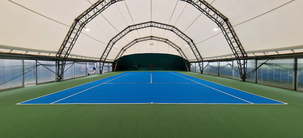 Realizzazione di campo tennis in terra rossa nel centro sportivo comunale di Carate Brianza compreso copertura pressostatica mt 36x36 in pvc a singola membrana e generatore d'aria calda Apen Group di ultima generazione